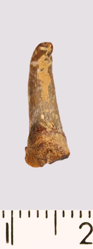 Зуб (фрагмент). Акула. Scapanorhynchus raphiodon (Agassiz, 1843). Классификация: Хордовые Chordata, Позвоночные Vertebrata, Хрящевые рыбы Chondrichthyes, Пластиножаберные Elasmobranchii