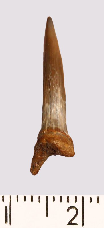 Зуб. Акула. Scapanorhynchus raphiodon (Agassiz, 1843). Классификация: Хордовые Chordata, Позвоночные Vertebrata, Хрящевые рыбы Chondrichthyes, Пластиножаберные Elasmobranchii