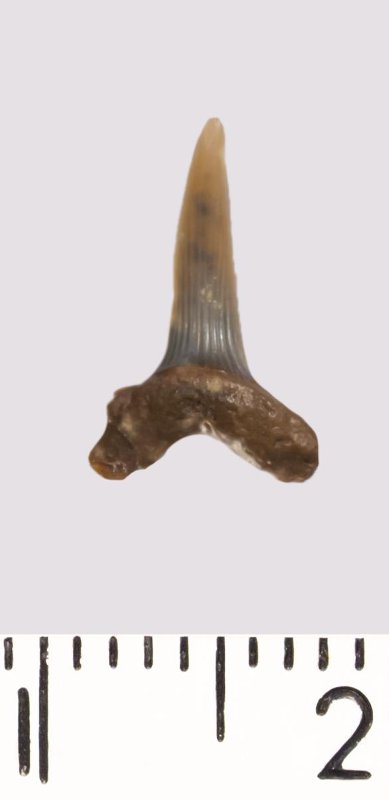 Зуб. Акула. Scapanorhynchus raphiodon (Agassiz, 1843). Классификация: Хордовые Chordata, Позвоночные Vertebrata, Хрящевые рыбы Chondrichthyes, Пластиножаберные Elasmobranchii