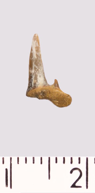 Зуб. Акула. Scapanorhynchus raphiodon (Agassiz, 1843). Классификация: Хордовые Chordata, Позвоночные Vertebrata, Хрящевые рыбы Chondrichthyes, Пластиножаберные Elasmobranchii