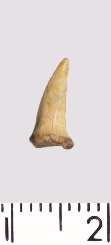 Зуб (фрагмент). Акула. Rhaphiodus sp. Классификация: Хордовые Chordata, Позвоночные Vertebrata, Хрящевые рыбы Chondrichthyes, Пластиножаберные Elasmobranchii