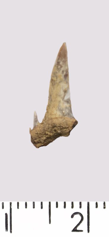 Зуб. Акула. Rhaphiodus sp. Классификация: Хордовые Chordata, Позвоночные Vertebrata, Хрящевые рыбы Chondrichthyes, Пластиножаберные Elasmobranchii