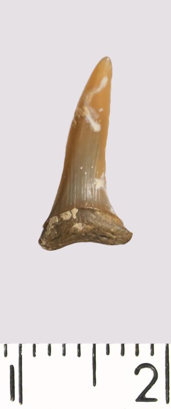 Зуб (фрагмент). Акула. Rhaphiodus sp. Классификация: Хордовые Chordata, Позвоночные Vertebrata, Хрящевые рыбы Chondrichthyes, Пластиножаберные Elasmobranchii