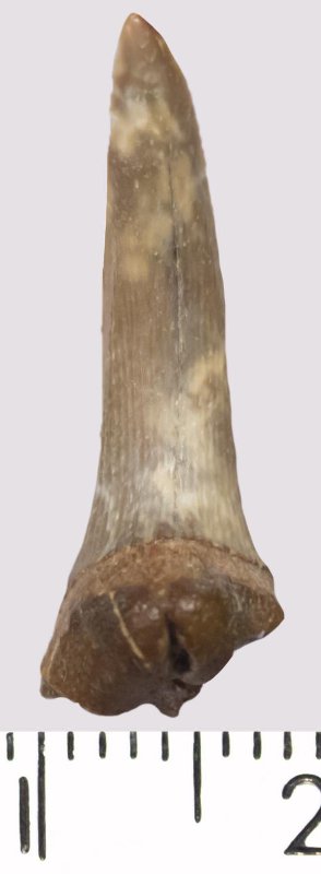 Зуб (фрагмент). Акула. Rhaphiodus sp. Классификация: Хордовые Chordata, Позвоночные Vertebrata, Хрящевые рыбы Chondrichthyes, Пластиножаберные Elasmobranchii