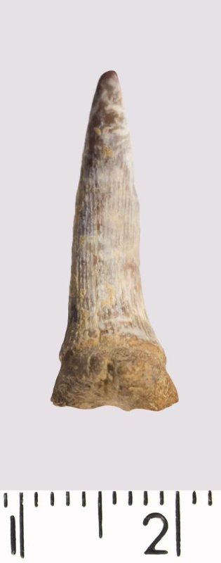 Зуб (фрагмент). Акула. Rhaphiodus sp. Классификация: Хордовые Chordata, Позвоночные Vertebrata, Хрящевые рыбы Chondrichthyes, Пластиножаберные Elasmobranchii