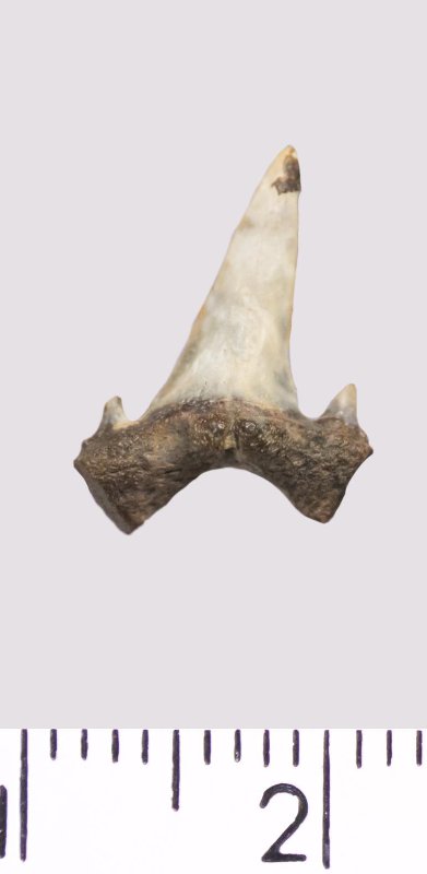 Зуб. Акула. Rhaphiodus sp. Классификация: Хордовые Chordata, Позвоночные Vertebrata, Хрящевые рыбы Chondrichthyes, Пластиножаберные Elasmobranchii