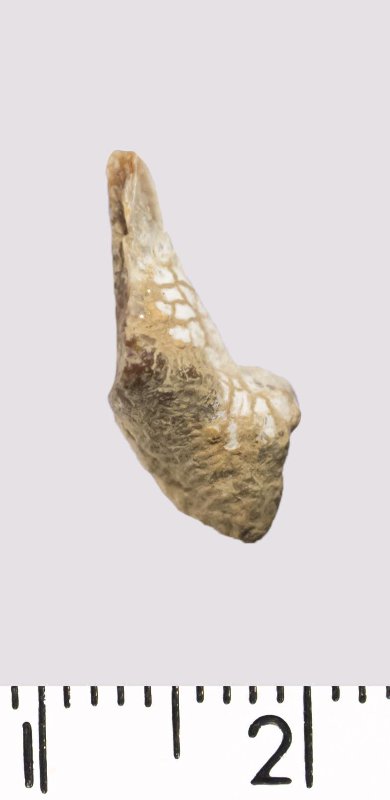 Зуб (фрагмент). Акула. Scapanorhynchus gigas Woodward 1889. Классификация: Хордовые Chordata, Позвоночные Vertebrata, Хрящевые рыбы Chondrichthyes, Пластиножаберные Elasmobranchii
