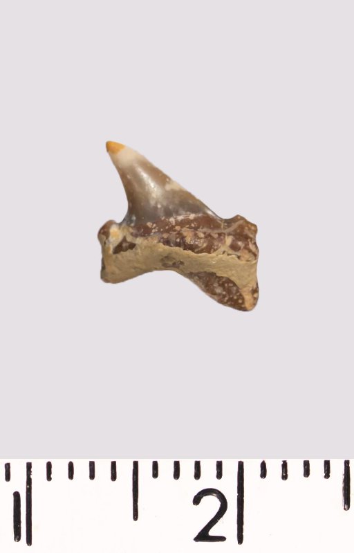 Зуб. Акула. Odontaspis macrorhiza (Cope) Leriche, 1902. Классификация: Хордовые Chordata, Позвоночные Vertebrata, Хрящевые рыбы Chondrichthyes, Пластиножаберные Elasmobranchii