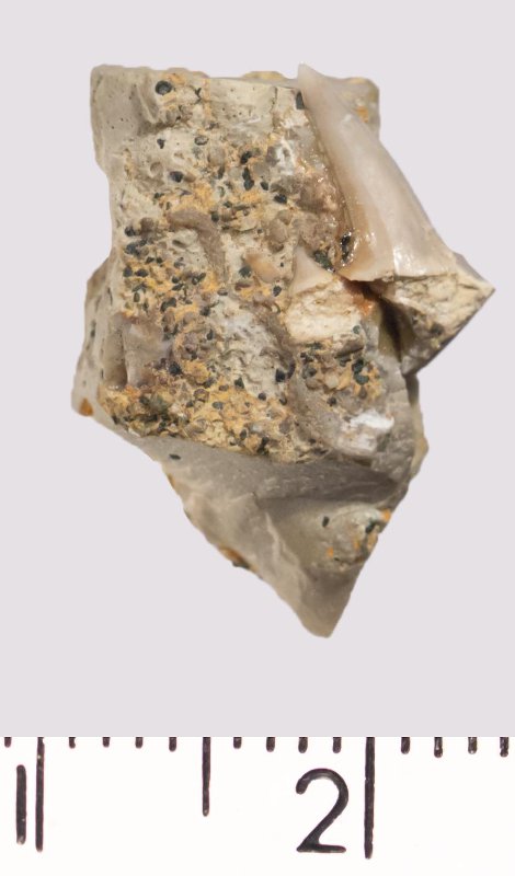 Зуб (фрагмент). Акула. Eostriatolamia sp. Классификация: Хордовые Chordata, Позвоночные Vertebrata, Хрящевые рыбы Chondrichthyes, Пластиножаберные Elasmobranchii