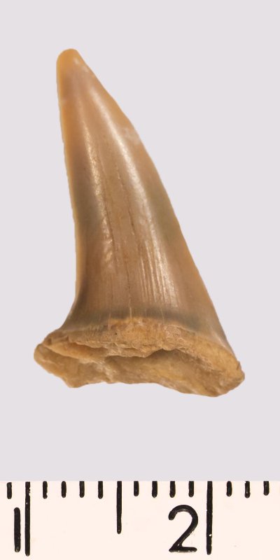 Зуб (фрагмент). Акула. Rhaphiodus sp. Классификация: Хордовые Chordata, Позвоночные Vertebrata, Хрящевые рыбы Chondrichthyes, Пластиножаберные Elasmobranchii