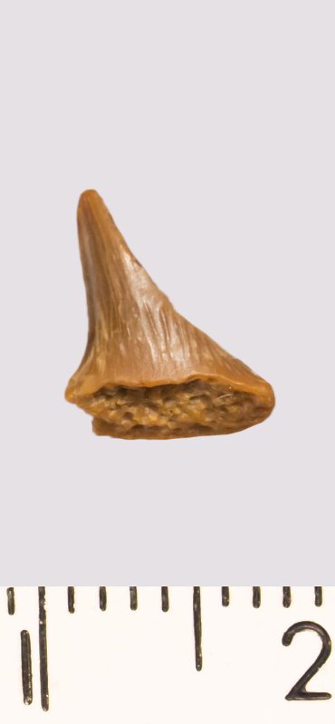 Зуб (фрагмент). Акула. Meristodon sp. Классификация: Хордовые Chordata, Позвоночные Vertebrata, Хрящевые рыбы Chondrichthyes, Пластиножаберные Elasmobranchii