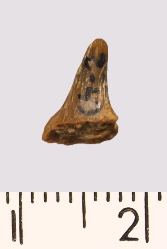 Зуб (фрагмент). Акула. Meristodon sp. Классификация: Хордовые Chordata, Позвоночные Vertebrata, Хрящевые рыбы Chondrichthyes, Пластиножаберные Elasmobranchii