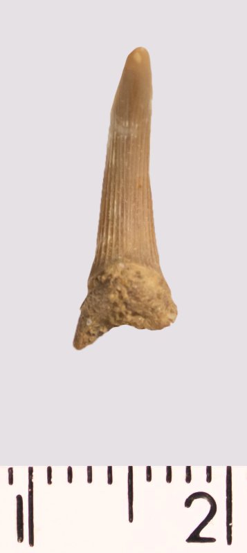 Зуб. Акула. Scapanorhynchus raphiodon (Agassiz, 1843). Классификация: Хордовые Chordata, Позвоночные Vertebrata, Хрящевые рыбы Chondrichthyes, Пластиножаберные Elasmobranchii