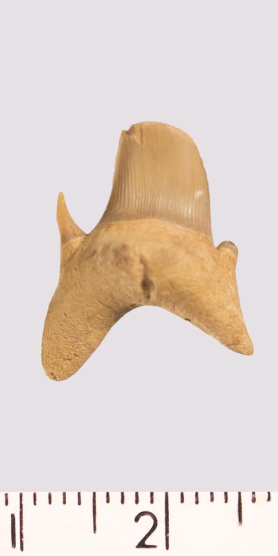 Зуб. Акула. Rhaphiodus sp. Классификация: Хордовые Chordata, Позвоночные Vertebrata, Хрящевые рыбы Chondrichthyes, Пластиножаберные Elasmobranchii