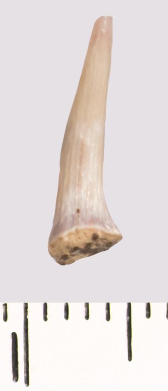 Зуб (фрагмент). Акула. Scapanorhynchus raphiodon (Agassiz, 1843). Классификация: Хордовые Chordata, Позвоночные Vertebrata, Хрящевые рыбы Chondrichthyes, Пластиножаберные Elasmobranchii, Акулы Selachii, Ламнообразные Lamniformes