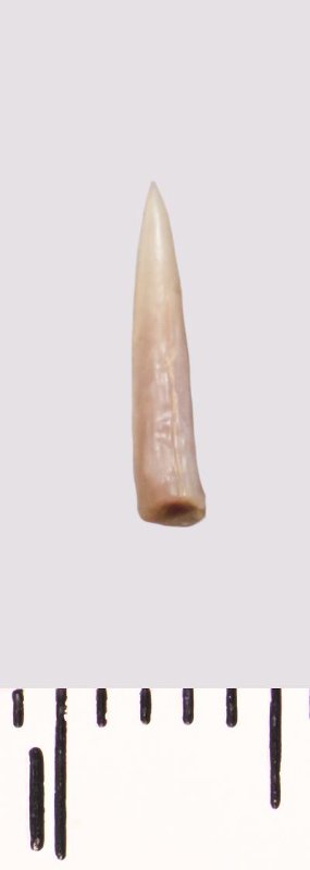 Зуб (фрагмент). Акула. Scapanorhynchus raphiodon (Agassiz, 1843). Классификация: Хордовые Chordata, Позвоночные Vertebrata, Хрящевые рыбы Chondrichthyes, Пластиножаберные Elasmobranchii, Акулы Selachii, Ламнообразные Lamniformes