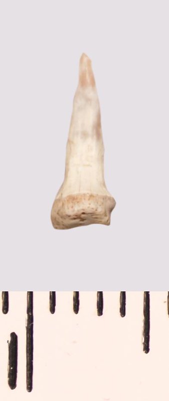 Зуб (фрагмент). Акула. Scapanorhynchus raphiodon (Agassiz, 1843). Классификация: Хордовые Chordata, Позвоночные Vertebrata, Хрящевые рыбы Chondrichthyes, Пластиножаберные Elasmobranchii, Акулы Selachii, Ламнообразные Lamniformes