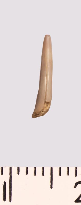 Зуб (фрагмент). Акула. Scapanorhynchus raphiodon (Agassiz, 1843). Классификация: Хордовые Chordata, Позвоночные Vertebrata, Хрящевые рыбы Chondrichthyes, Пластиножаберные Elasmobranchii, Акулы Selachii, Ламнообразные Lamniformes