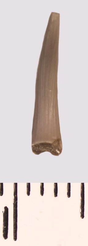 Зуб (фрагмент). Акула. Scapanorhynchus raphiodon (Agassiz, 1843). Классификация: Хордовые Chordata, Позвоночные Vertebrata, Хрящевые рыбы Chondrichthyes, Пластиножаберные Elasmobranchii, Акулы Selachii, Ламнообразные Lamniformes