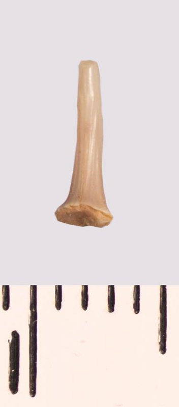 Зуб (фрагмент). Акула. Scapanorhynchus raphiodon (Agassiz, 1843). Классификация: Хордовые Chordata, Позвоночные Vertebrata, Хрящевые рыбы Chondrichthyes, Пластиножаберные Elasmobranchii, Акулы Selachii, Ламнообразные Lamniformes