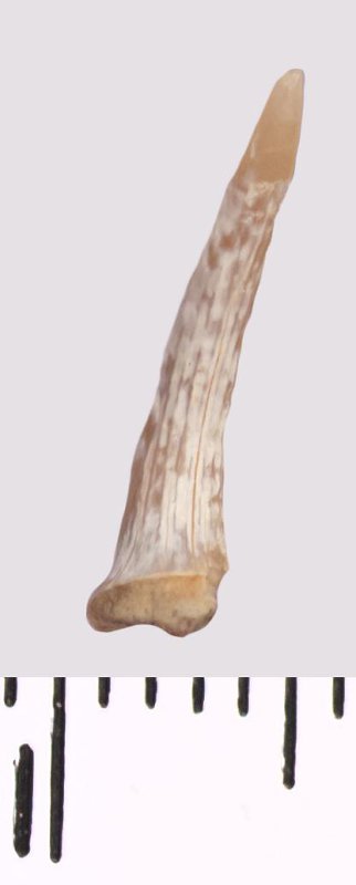 Зуб (фрагмент). Акула. Scapanorhynchus raphiodon (Agassiz, 1843). Классификация: Хордовые Chordata, Позвоночные Vertebrata, Хрящевые рыбы Chondrichthyes, Пластиножаберные Elasmobranchii, Акулы Selachii, Ламнообразные Lamniformes