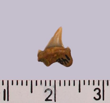 Зуб. Акула. Archaeolamna cf. kopingensis (Davis, 1890). Классификация: Хордовые Chordata, Позвоночные Vertebrata, Хрящевые рыбы Chondrichthyes, Пластиножаберные Elasmobranchii, Акулы Selachii, Ламнообразные Lamniformes, Cretoxyrhinidae
