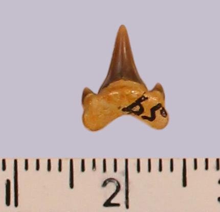 Зуб. Акула. Archaeolamna cf. kopingensis (Davis, 1890). Классификация: Хордовые Chordata, Позвоночные Vertebrata, Хрящевые рыбы Chondrichthyes, Пластиножаберные Elasmobranchii, Акулы Selachii, Ламнообразные Lamniformes, Cretoxyrhinidae