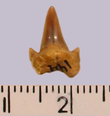 Зуб. Акула. Archaeolamna cf. kopingensis (Davis, 1890). Классификация: Хордовые Chordata, Позвоночные Vertebrata, Хрящевые рыбы Chondrichthyes, Пластиножаберные Elasmobranchii, Акулы Selachii, Ламнообразные Lamniformes, Cretoxyrhinidae