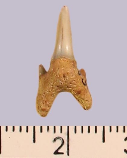 Зуб. Акула. Protolamna cf. sokolovi Cappetta, 1980. Классификация: Хордовые Chordata, Позвоночные Vertebrata, Хрящевые рыбы Chondrichthyes, Пластиножаберные Elasmobranchii, Акулы Selachii, Ламнообразные Lamniformes, Pseudoscapanorhynchidae