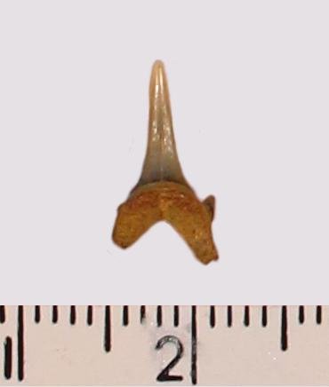 Зуб. Акула. Eostriatolamia subulata (Agassiz, 1843). Классификация: Хордовые Chordata, Позвоночные Vertebrata, Хрящевые рыбы Chondrichthyes, Пластиножаберные Elasmobranchii, Акулы Selachii, Ламнообразные Lamniformes, Песчаные акулы Odontaspididae