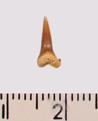 Мелкий боковой зуб с коронкой темно-бежевого цвета, режущего типа, с гладким режущим краем. С лингвальной стороны у основания коронки на эмали имеется скульптура в виде слабой продольной струйчатости. Корень светло-охристый, арочный, умеренно массивный, со следами сильной окатанности. Имелась одна пара добавочных зубцов коронки, сохранился только правый.