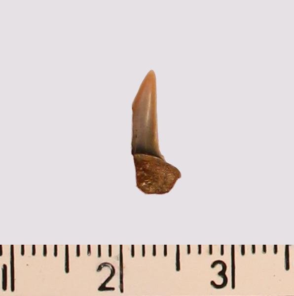 Зуб (фрагмент). Акула. Lamniformes gen. indet. Классификация: Хордовые Chordata, Позвоночные Vertebrata, Хрящевые рыбы Chondrichthyes, Пластиножаберные Elasmobranchii, Акулы Selachii, Ламнообразные Lamniformes