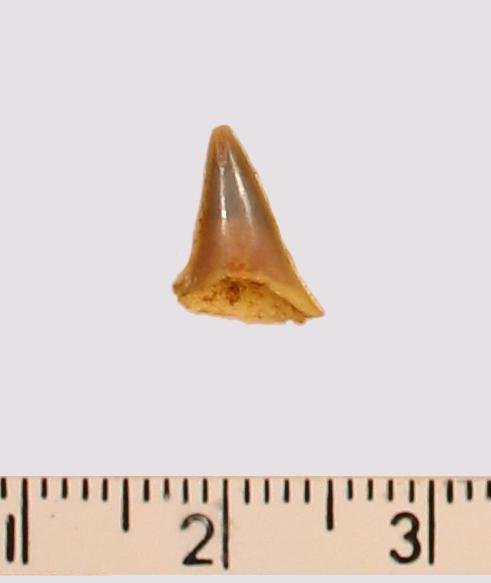 Зуб (фрагмент). Акула. Lamniformes gen. indet. Классификация: Хордовые Chordata, Позвоночные Vertebrata, Хрящевые рыбы Chondrichthyes, Пластиножаберные Elasmobranchii, Акулы Selachii, Ламнообразные Lamniformes