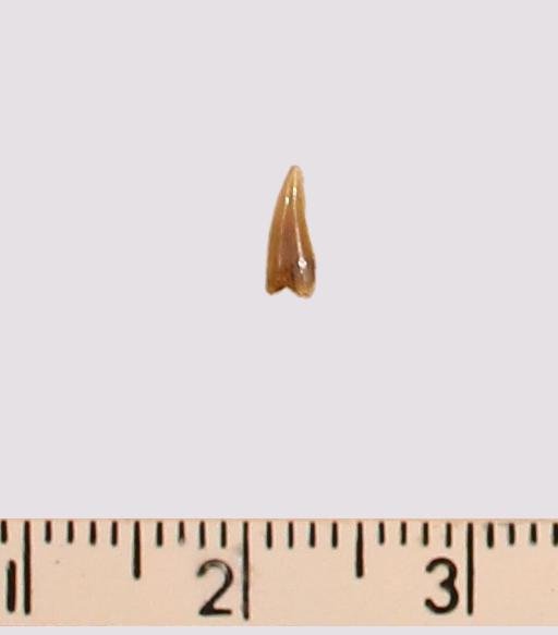 Зуб (фрагмент). Акула. Lamniformes gen. indet. Классификация: Хордовые Chordata, Позвоночные Vertebrata, Хрящевые рыбы Chondrichthyes, Пластиножаберные Elasmobranchii, Акулы Selachii, Ламнообразные Lamniformes