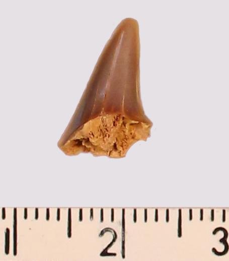 Зуб (фрагмент). Акула. Lamniformes gen. indet. Классификация: Хордовые Chordata, Позвоночные Vertebrata, Хрящевые рыбы Chondrichthyes, Пластиножаберные Elasmobranchii, Акулы Selachii, Ламнообразные Lamniformes