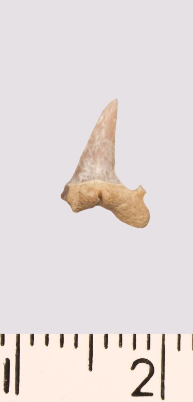 Зуб. Акула. Eostriatolamia venusta Leriche, 1906. Классификация: Хордовые Chordata, Позвоночные Vertebrata, Хрящевые рыбы Chondrichthyes, Пластиножаберные Elasmobranchii