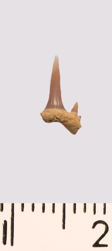 Зуб. Акула. Eostriatolamia venusta Leriche, 1906. Классификация: Хордовые Chordata, Позвоночные Vertebrata, Хрящевые рыбы Chondrichthyes, Пластиножаберные Elasmobranchii