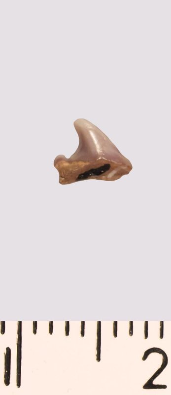 Зуб. Акула. Eostriatolamia venusta Leriche, 1906. Классификация: Хордовые Chordata, Позвоночные Vertebrata, Хрящевые рыбы Chondrichthyes, Пластиножаберные Elasmobranchii