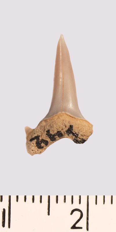 Зуб. Акула. Eostriatolamia venusta Leriche, 1906. Классификация: Хордовые Chordata, Позвоночные Vertebrata, Хрящевые рыбы Chondrichthyes, Пластиножаберные Elasmobranchii
