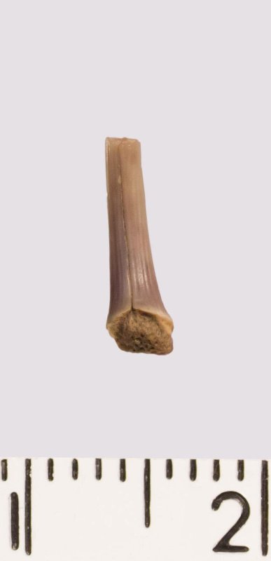 Зуб (фрагмент). Акула. Scapanorhynchus rhaphiodon Agassiz 1843. Классификация: Хордовые Chordata, Позвоночные Vertebrata, Хрящевые рыбы Chondrichthyes, Пластиножаберные Elasmobranchii