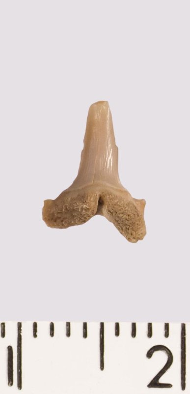 Зуб. Акула. Eostriatolamia venusta Leriche, 1906. Классификация: Хордовые Chordata, Позвоночные Vertebrata, Хрящевые рыбы Chondrichthyes, Пластиножаберные Elasmobranchii