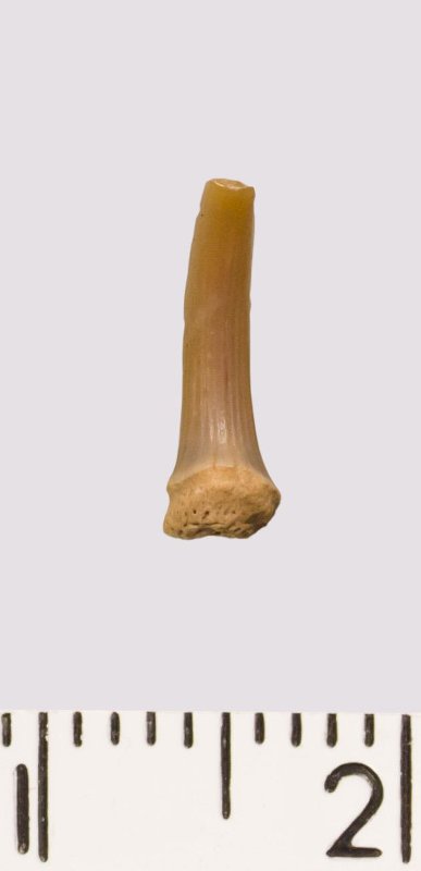 Зуб (фрагмент). Акула. Scapanorhynchus rhaphiodon Agassiz 1843. Классификация: Хордовые Chordata, Позвоночные Vertebrata, Хрящевые рыбы Chondrichthyes, Пластиножаберные Elasmobranchii