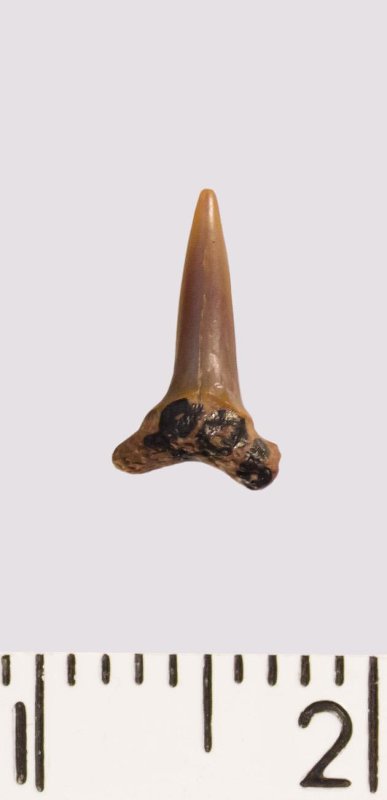 Зуб. Акула. Eostriatolamia venusta Leriche, 1906. Классификация: Хордовые Chordata, Позвоночные Vertebrata, Хрящевые рыбы Chondrichthyes, Пластиножаберные Elasmobranchii