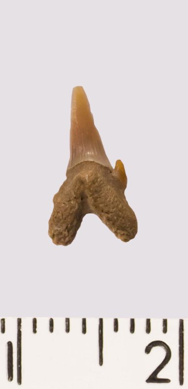 Зуб. Акула. Eostriatolamia venusta Leriche, 1906. Классификация: Хордовые Chordata, Позвоночные Vertebrata, Хрящевые рыбы Chondrichthyes, Пластиножаберные Elasmobranchii