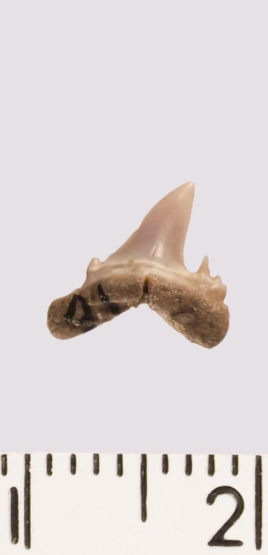 Зуб. Акула. Eostriatolamia venusta Leriche, 1906. Классификация: Хордовые Chordata, Позвоночные Vertebrata, Хрящевые рыбы Chondrichthyes, Пластиножаберные Elasmobranchii
