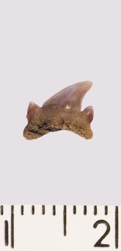 Зуб. Акула. Eostriatolamia venusta Leriche, 1906. Классификация: Хордовые Chordata, Позвоночные Vertebrata, Хрящевые рыбы Chondrichthyes, Пластиножаберные Elasmobranchii