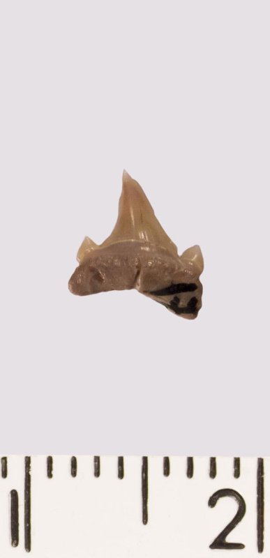 Зуб. Акула. Eostriatolamia venusta Leriche, 1906. Классификация: Хордовые Chordata, Позвоночные Vertebrata, Хрящевые рыбы Chondrichthyes, Пластиножаберные Elasmobranchii
