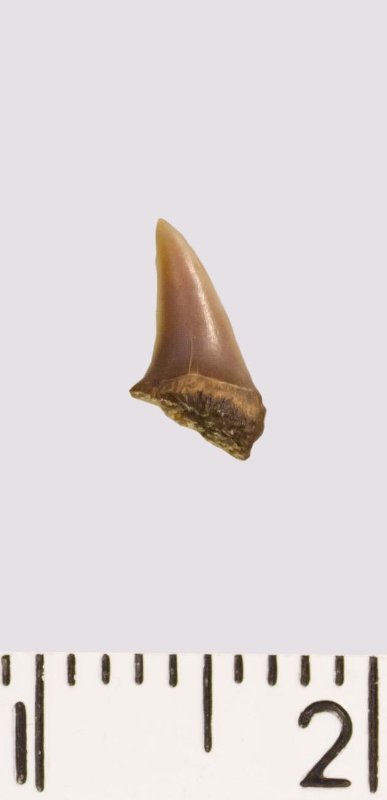 Зуб (фрагмент). Акула. Eostriatolamia venusta Leriche, 1906. Классификация: Хордовые Chordata, Позвоночные Vertebrata, Хрящевые рыбы Chondrichthyes, Пластиножаберные Elasmobranchii