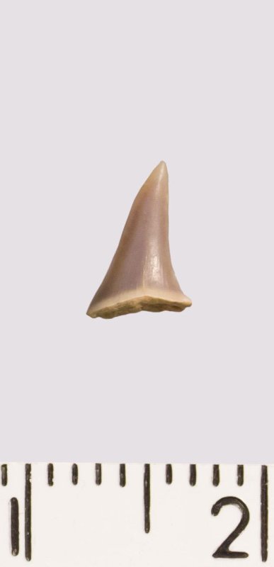 Зуб (фрагмент). Акула. Eostriatolamia venusta Leriche, 1906. Классификация: Хордовые Chordata, Позвоночные Vertebrata, Хрящевые рыбы Chondrichthyes, Пластиножаберные Elasmobranchii
