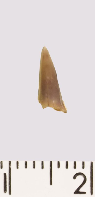 Зуб (фрагмент). Акула. Eostriatolamia venusta Leriche, 1906. Классификация: Хордовые Chordata, Позвоночные Vertebrata, Хрящевые рыбы Chondrichthyes, Пластиножаберные Elasmobranchii